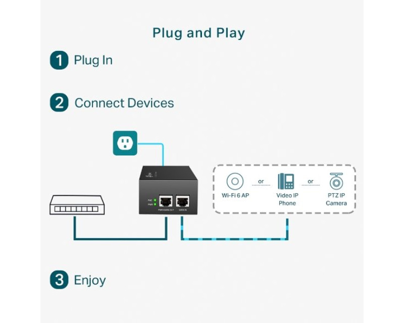 - Vhodný pro PTZ IPC, VoIP, AP či LED