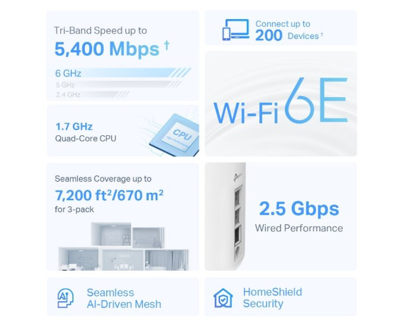 WiFi router TP-Link Deco XE75 Pro(3-pack) AXE5400, WiFi 6E, 1x 2.5GLAN, 2x GLAN / 574Mbps 2,4GHz/ 2402Mbps 5GHz/ 2402 6