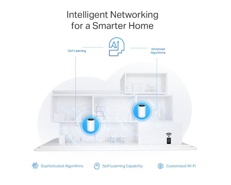eliminuje mrtvé zóny jednou provždy! Zásluhou umělé inteligence (AI) a pokročilé technologie Mesh (802.11k/v/r) spolupracují jednotky na vytvoření jednotné domácí či