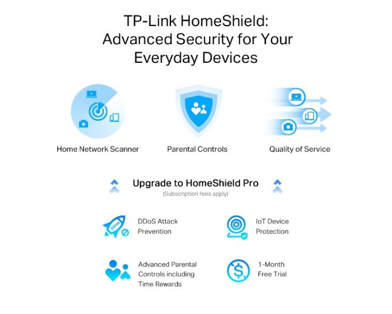 HomeShield patří mezi pokročilé služby TP-Link. Zajistí vám bezpečné prostředí a ochrání vaše data i soukromí vaší rodiny. Domácí síťový skener v reálném čase detekuje potenciální hrozby a problémy. Díky rodičovské kontrole kontrolujete čas dětí strávených na síti. Zablokujte nevhodný obsah a zabraňte svým potomkům v přístupu na nebezpečné stránky.
