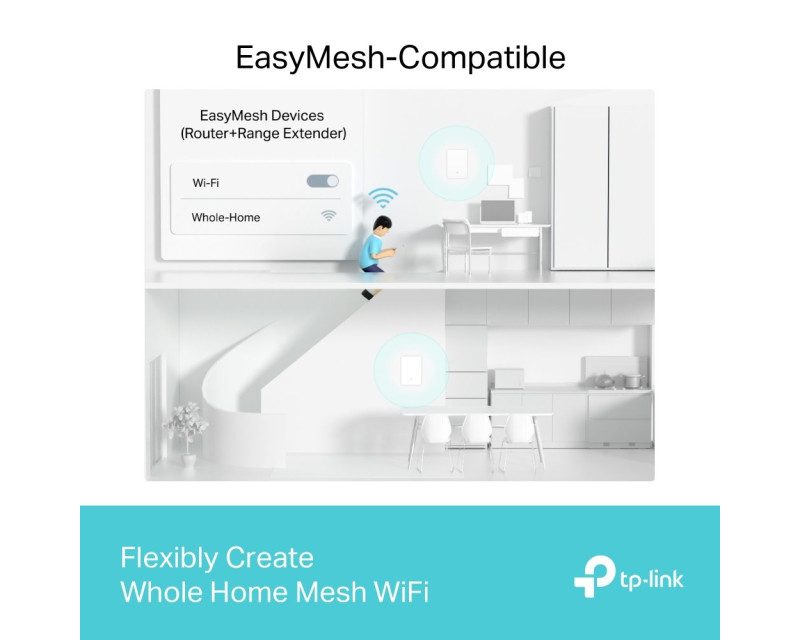 Extender TP-Link podporuje standard EasyMesh. Pokud si pořídíte další nebo extender s technologií EasyMesh, vytvoříte si multigigabitovou síť. Zbavíte se mrtvých zón Wi-Fi a zajistíte si nepřerušované streamování, i když se pohybujete po domě. Připojení je navíc pod jedním názvem, takže nedochází ke zdlouhavému přepínání mezi sítěmi. Extender sám vybírá nejrychlejší cestu připojení k routeru. Využijete tedy svou bezdrátovou síť na maximum.