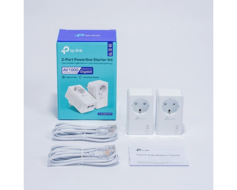 Powerline ethernet TP-Link TL-PA7027P je dvojice adaptérů, které dokáží mezi sebou přenášet data po elektrické síti ve vaší domácnosti. Elektrické rozvody nahradí ethernetové kabely, které by bylo nutné vést složitě po celém domě.