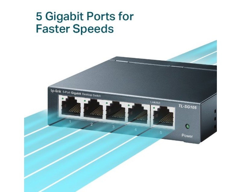 TP-Link TL-SG105 je vysokorychlostní gigabitový stolní switch v kovovém těle, který je ideálním řešením pro pracovní skupiny. Obsahuje 5x 10/100/1000BASE-T gigabitový Ethernet port s AUTO-MDIX s maximální rychlost 2000 Mbps ve full duplex modu a LED indikátory zobrazují instalaci kabelů a diagnostiku.Parametry: