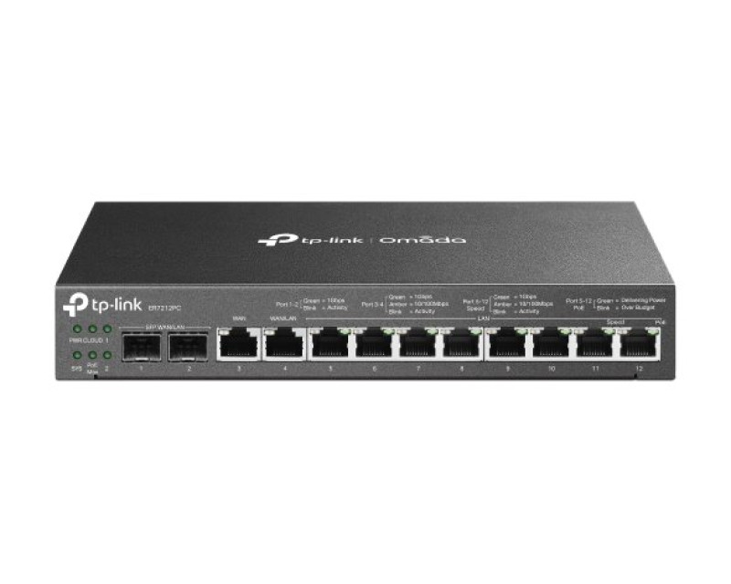 2jádrový procesor 1,2 GHz s 1 GB paměti DDR3 vám zajistí dostatečný výkon až pro 12 gigabitových portů. Pořiďte si tento profesionální hardware, na kterém najdete až 4 ethernetové porty WAN - z toho 2 jsou gigabitové SFP WAN/LAN porty, jeden gigabitový port RJ45 WAN a jeden gigabitový port RJ45 WAN/LAN. Router TP-Link ER7212PC je dále vybavený 8 porty PoE+ RJ45 LAN se standardem 802.3at/af s celkovým výstupním napájením 110 W.