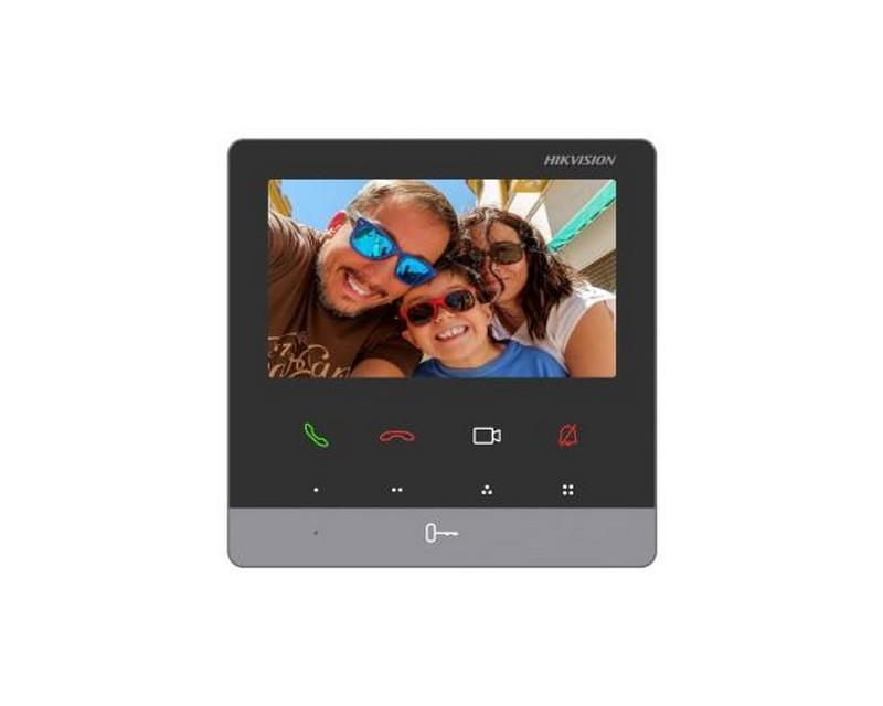 Vnitřní monitory HikVision Vnitřní video + audio jednotka, dotyková tlačítka, 4.3" barevný TFT bezdotykový displej 480 x 272px, 5 hlavních ovládacích tlačítek + 4 nastavitelná tlačítka, instalace na stěnu, vestavěný mikrofon a reproduktor, 1x LAN port 100 Mbps, nepodporuje Hik-connect, rozměry 120 x 120 x 21 mm, napájení 12VDC/PoE - 4W, zdroj není součástí