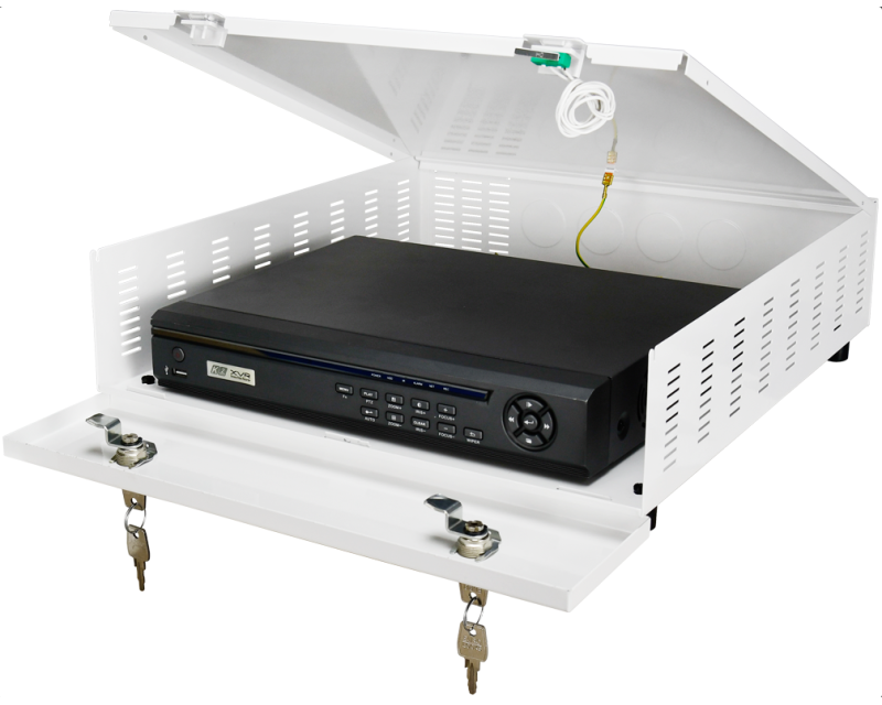 Uzamykatelná skříňka pro větší DVR / NVR či jiná zařízení * Vnější rozměry skříňky 500 x 120 x 405 mm * Rozměry místa pro rekordér 455 x 90 x 335 mm * Hmotnost 5.30 Kg * Ochrana proti sabotáži: tamper spínač – otevření skříně * Horizontální montáž rekordéru * Možnost doplnění o ventilátor ARAW45 a o úchyt AWO483BR pro instalaci např. pod desku stolu * Konstrukce krytu je přizpůsobena požadavkům ochrany osobních dat (GDPR) pro informace, které musí být chráněny a bezpečně přechovávány * Materiál železo, tloušťka 1.0 mm, antikorozní úprava, barva bílá. *