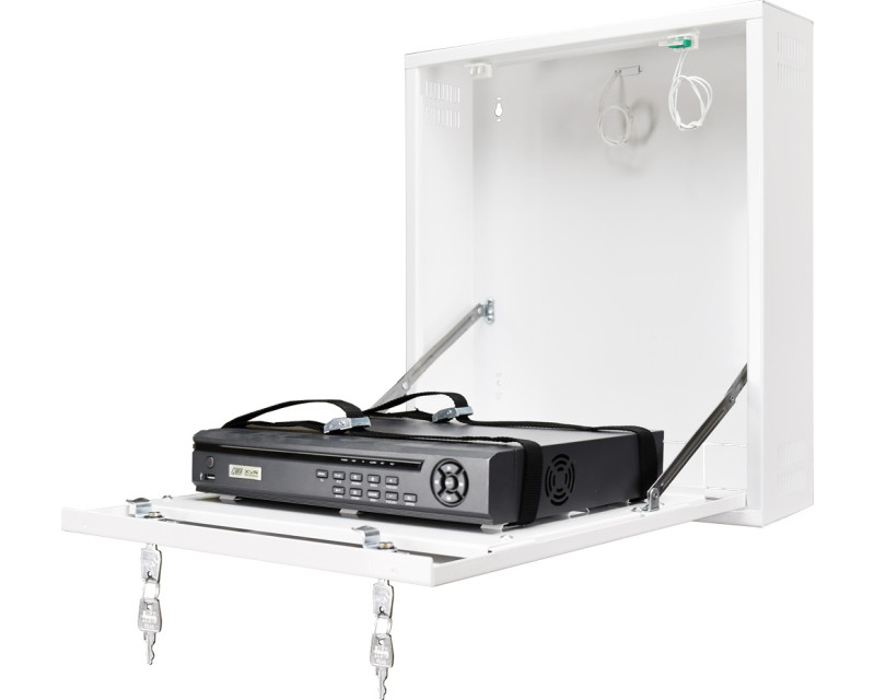 Uzamykatelná skříňka na zeď pro malé DVR / NVR či jiná zařízení * Vnější rozměry skříňky 435 x 500 x 135 mm * Rozměry místa pro rekordér 375 x 95 x 335 mm * Hmotnost 8.20 Kg * Ochrana proti sabotáži: 2 x tamper spínač – otevření skříně a odtržení ze zdi * Vertikální montáž rekordéru * Možnost doplnění o ventilátor ARAW45 * Konstrukce krytu je přizpůsobena požadavkům ochrany osobních dat (GDPR) pro informace, které musí být chráněny a bezpečně přechovávány * Materiál železo, tloušťka 1.0 mm, antikorozní úprava, barva bílá. *