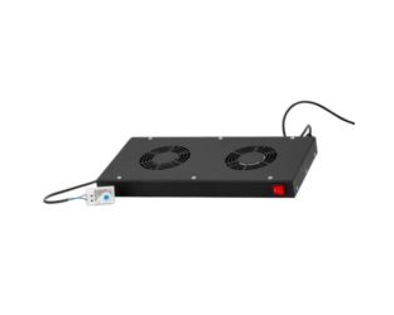 Ventilátorová police pro 19“ racky * Vhodné pro všechny racky rozměru 19“ * Vnější rozměry: 465 x 44 x 204 mm * Výška zabrané pozice: 1U * Hmotnost: 3.11 Kg * Součástí balení dva typy montážních příchytek – variabilní přidělání * Obsahuje dva ventilátory, napájení: 220-240 V (50/60 Hz), kuličková ložiska * Součástí je připojený termostat, regulující od 0°C do 60°C * Obsahuje 1.5 metrů dlouhý napájecí kabel * Velikost ventilátorů: 120 x 120 x 38 mm (2 kusy) * Celkový odběr: 0.32 A, Průtok vzduchu: 199 m3/h (x2 kusy) * Manuální spínač pro zapnutí / vypnutí se světelnou indikací napájení * Materiál: železo, tloušťka 1.0 mm, antikorozní prášková úprava * Barva černá *