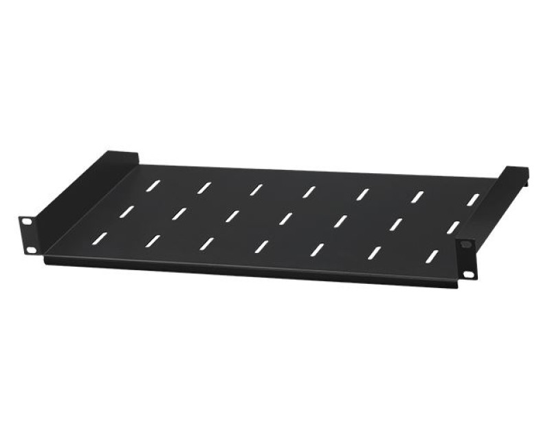 Police na zařízení pro 19“ racky * Vhodná pro všechny racky rozměru 19“ * Vnější rozměry: 485 x 52 x 250 mm * Výška zabrané pozice: 1U * Hmotnost: 0.92 Kg * Součástí balení montážní příchytky a šrouby do racku * Materiál: železo, tloušťka 1.0 mm, antikorozní prášková úprava * Barva černá *