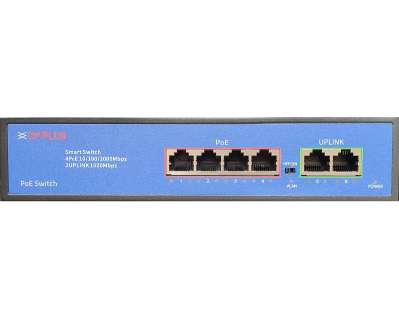 PoE switch * 4 x 10/100/1000 Mbps LAN PoE port * 2 x 1000 Mbps uplink port * IEEE 802.3af/at, max. 30W na jeden PoE port * Přenosová vzdálenost pro kamery až 100m * 2KV přepěťová a 1.5KV ESD ochrana * Napájení vestavěným zdrojem 100-240V AC, 50/60Hz * Provozní teplota -10 až 50°C * Spotřeba do 5W * Rozměry 202 x 140 x 45 mm * Hmotnost 700 g * Diody signalizující napájení PoE i připojení portu * Barva černo modrá *