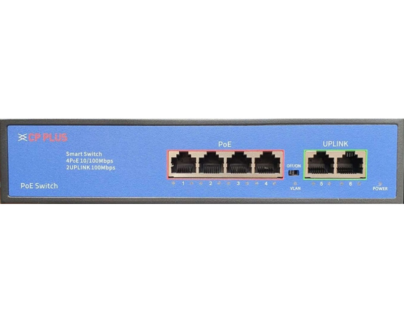 CP PLUS CP-DNW-HPU4H2-48-V2 Čtyřportový 10/100 Mbps PoE switch s 2x 10/100 Mbps uplinkem