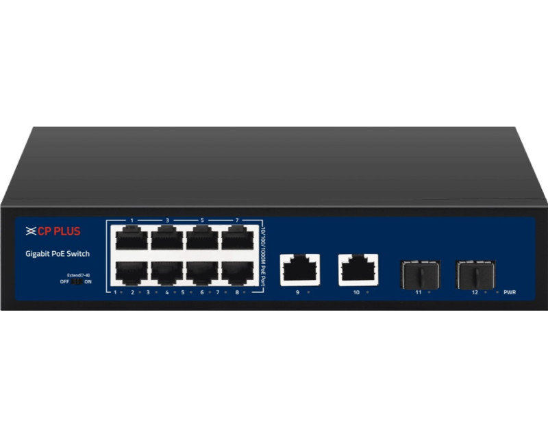 CP PLUS CP-DNW-GPU8G2F2-96 Osmiportový 10/100/1000 Mbps PoE switch s 2x 1000 Mbps a 2x SFP uplinkem