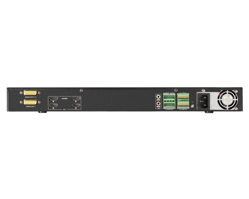 | Dekodér pro dekódování až 64 kanálů (podle rozlišení), 4x HDMI (4K), 1x BNC, 2x HDMI vstup, komprese H.265+/H.265/H.264+/H.264/MJPEG, dekódování až 32Mpx, 1x RJ-45 + 1x SFP 10/100/1000Mbps, alarmové vstupy/výstupy 8/8, audio výstup, RS-485, RS-232, 2x USB, vhodné pro video stěny, napájení 230V AC/50W, rozměry 440x321x45mm | |