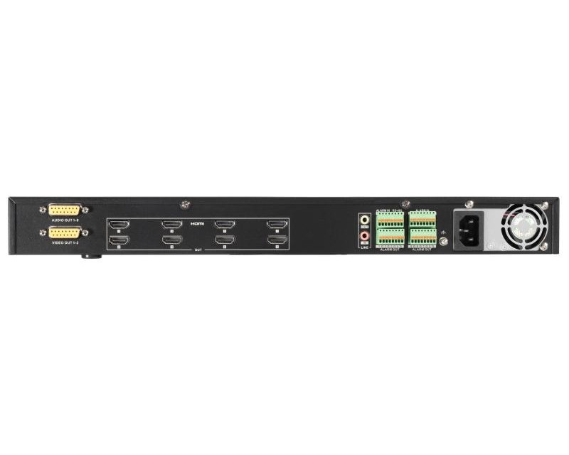 | Dekodér pro dekódování až 128 kanálů (podle rozlišení), 8x HDMI (4K), 2x BNC, 2x HDMI vstup, komprese H.265+/H.265/H.264+/H.264/MJPEG, dekódování až 32Mpx, 2x RJ-45 + 2x SFP 10/100/1000Mbps, alarmové vstupy/výstupy 8/8, audio výstup, RS-485, RS-232, 2x USB, vhodné pro video stěny, napájení 230V AC/70W, rozměry 440x321x45mm | |