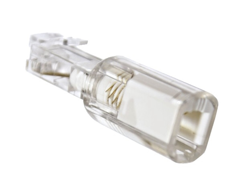 Otočný konektor pro sluchátkové kroucené šňůry RJ10 4/4 bílý . Zajistí nepoškození a sukování kroucených šňůr