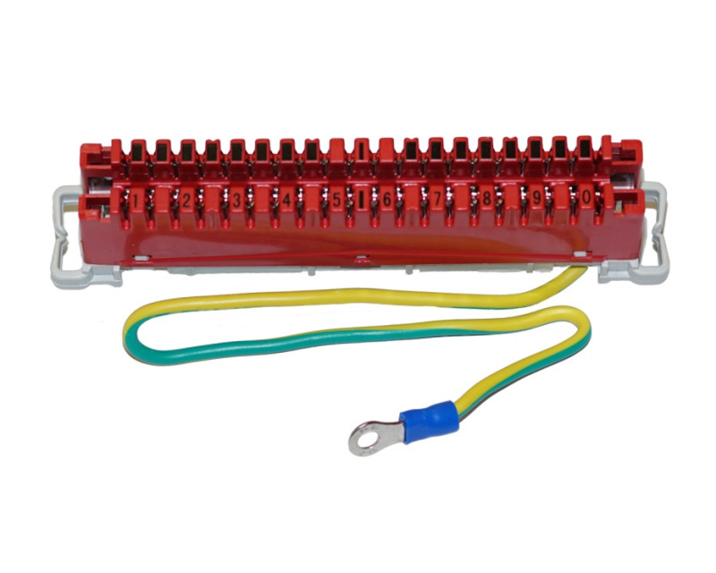 Svorkovnice zemnící červená typu Krone 10 párů s 25cm dlouhým žlutozeleným zemnícím vodičem zakončený okem M4