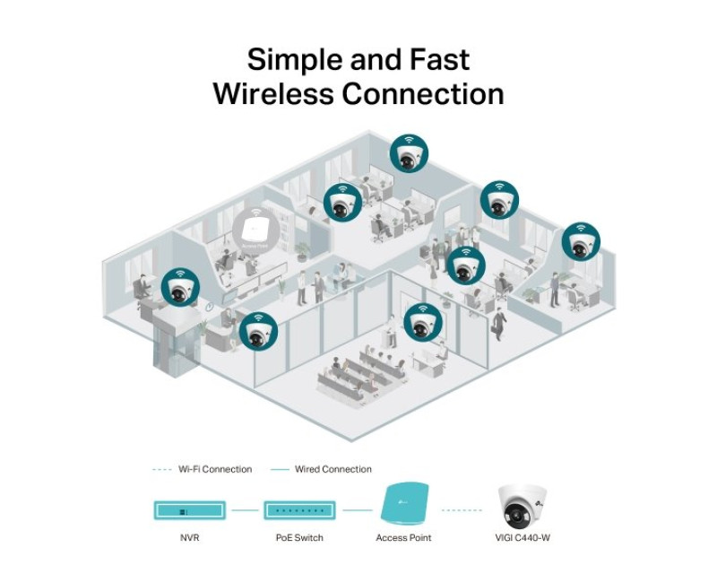 Zajistěte si ochranu svého pozemku s kopulovou síťovou kamerou VIGI C440 od značky TP-Link. Kamera sleduje dění kolem a poskytne vám čistý barevný obraz i za temných nocí. Vaše firma zůstane v co největším bezpečí. VIGI C440 s plnobarevným nočním viděním s maximálním rozlišením 4 MPx monitoruje okolí díky objektivu s velkou světelností, senzoru s vysokou citlivostí a přídavnému bílému osvětlení.