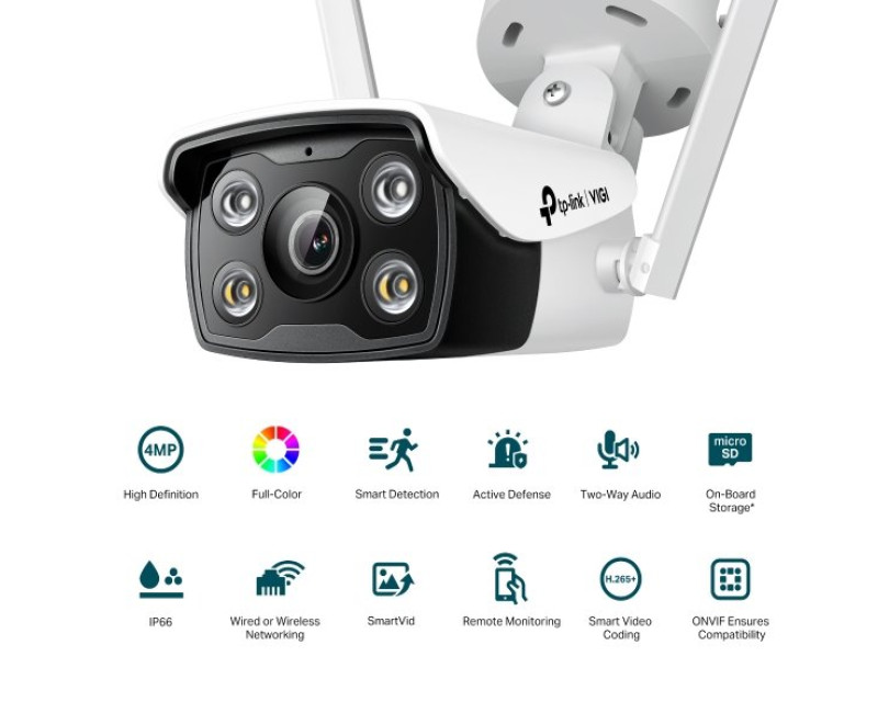 Zajistěte si ochranu svého pozemku s venkovní bullet síťovou kamerou VIGI C340-W od značky TP-Link. Kamera sleduje dění kolem a poskytne vám čistý barevný obraz i za temných nocí. Vaše firma zůstane v co největším bezpečí. VIGI C340-W s plnobarevným nočním viděním s maximálním rozlišením 4 MPx monitoruje okolí díky objektivu s velkou světelností, senzoru s vysokou citlivostí a přídavnému bílému osvětlení. Kameru navíc jednoduše připojíte k Wi-Fi.