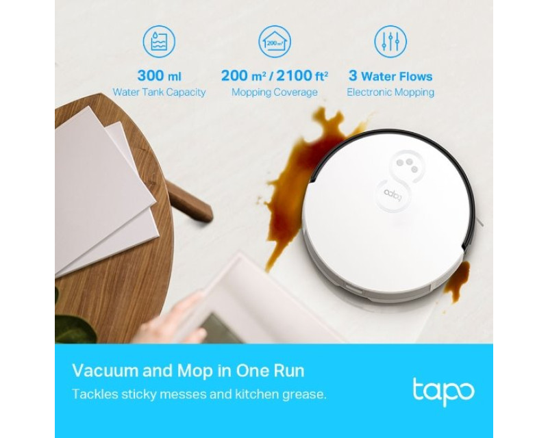 Tapo RV10 Plus umí také mopovat. Vypořádá se s lepkavými skvrnami, zatímco vy se věnujete jiným povinnostem, odpočinku nebo svým dětem. Vejde se do něj 300 ml vody a vytře plochu o rozloze až 200 m². Vyberte si správný tok vody ze 3 stupňů a nechte úklid na robotickém pomocníkovi.