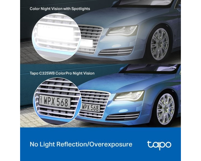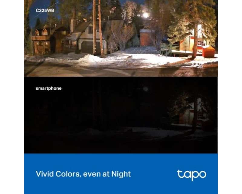 Bezpečnostní kamera Tapo C325WB natáčí ve dne v noci bez sebevětších obtíží. Barevný noční režim s technologií ColorPro a HDR zajistí dokonalý obraz nahrávaný za slabého okolního osvětlení. Barvy působí přirozeně i za tmy a neunikne vám žádný detail ani v temném zákoutí vašeho pozemku. Nepotřebujete venkovní světlo, takže ušetříte za energie. Zároveň žádné světlo neláká poletující hmyz, který by mohl spustit falešný poplach.