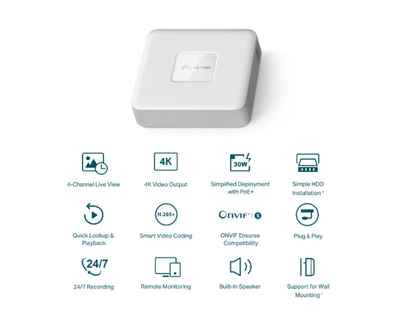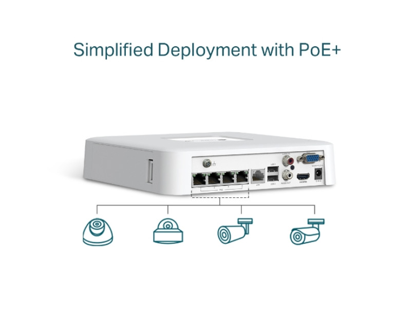 Zařízení TP-Link VIGI NVR1104H-4P s 4K HDMI video výstupem zaznamenává videa z bezpečnostních kamer a usnadňuje jejich správu. Poskytne vám vysoké rozlišení obrazu až 8MP. Ohlídáte si dění na svém pozemku či ve svém podniku (prodejna, sklad, restaurace, penzion). 4kanálový displej vám zobrazí záběry ze 4 kamer najednou. Neuteče vám tedy žádný detail.