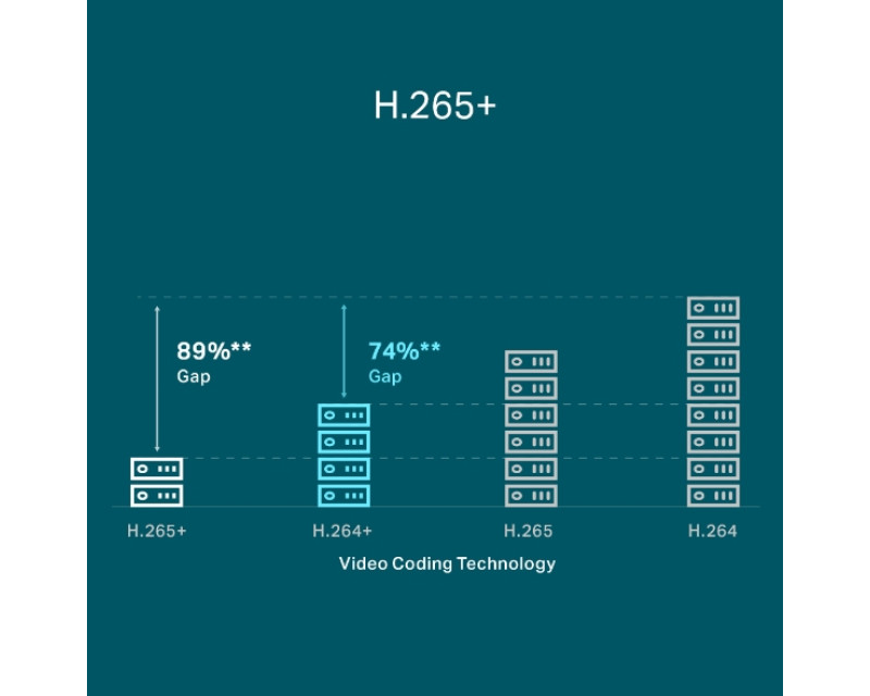 Vaše kamera přenáší křišťálově čisté video díky kompresi H.265+. Při přenosu nevyužívá další šířku pásma a šetří místo na disku. Se záznamovým zařízením TP-Link si tedy zajistíte vysokou kvalitu obrazu bez většího zatížení sítě.