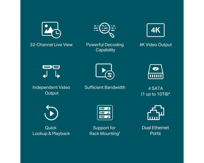 Síťové 32kanálové záznamové zařízení TP-Link VIGI NVR4032H slouží pro nepřetržité nahrávání videí 24 hodin denně po celých 7 dní v týdnu. Váš majetek, nemovitost i pozemek zůstanou v bezpečí a bude vždy monitorovaný. Zařízení podporuje mobilní aplikaci VIGI, která je vhodná pro vzdálené sledování dění, pro kontrolu uložených záznamů a pro správu kamer.
