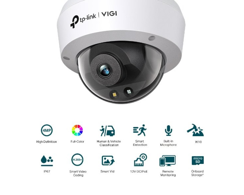 Zajistěte si ochranu svého pozemku s venkovní dome síťovou kamerou VIGI C240 (4mm) od značky TP-Link. Kamera sleduje dění kolem a poskytne vám čistý barevný obraz i za temných nocí. Vaše firma zůstane v co největším bezpečí. VIGI C240 s plnobarevným nočním viděním a v maximálním rozlišení 4 MPx monitoruje okolí díky objektivu s velkou světelností a senzoru s vysokou citlivostí.