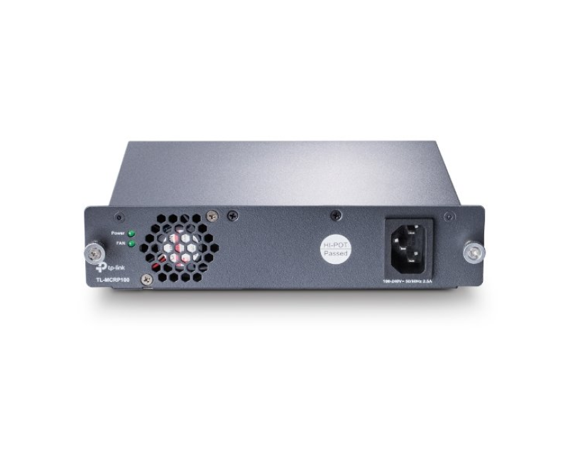 Modul redundantního napájení zdroje TP-LINK TL-MCRP100 je napájecí modul se střídavým (AC) vstupem a stejnosměrným (DC) výstupem. Je schopen konvertovat vstupní napětí 100-240V 50/60 Hz na stejnosměrné napětí 9.5VDC se jmenovitým výkonem 102W. Napájecí modul podporuje výstupní přepěťovou/nadproudovou ochranu a ochranu proti zkratu. TL-MCRP100 vhodný pro 14slotové rackové šasí TL-MC1400.