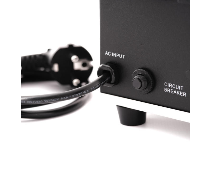 POZOR! Záložní zdroj (UPS) funguje pouze tehdy, když je připojen k externí baterii. Neměl by být používán bez připojení baterie. Po připojení akumulátoru, zapojte hlavní napájecí kabel do zásuvky (230V, 50 Hz) s uzemněním do sítě. Na zadní straně zdroje připojíte zařízení, které chcete, aby fungovalo při výpadku napájení. Postupujte podle následujícího pořadí: připojte baterii, připojte hlavní napájení a potom připojte spotřebič (zařízení) k záložnímu zdroji (UPS). Pro zapnutí nebo vypnutí AC zátěže (zásuvek pro spotřebič), tak stiskněte a podržte tlačítko napájení (ON / OFF) pod dobu cca 2 sekund.