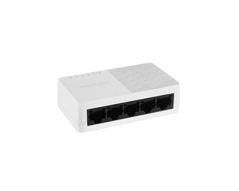 Switche a POE napájení HikVision 5 portový switch - 5x RJ-45 10/100/1000Mbps, bez managementu, plastové šasi, bez ventilátoru, stavové LED, hmotnost 0.06kg, rozměry 87 x 25 x 51mm, provozní teploty 0°C až +40°C, napájení 5VDC 3W, zdroj součástí