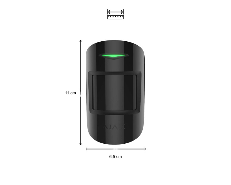 Ajax MotionProtect je bezdrátový detektor pohybu s PIR senzorem na vzdálenost 12 metrů. Zařízení navíc disponuje mikrovlnným detektorem, který eliminuje výskyt falešných poplachů způsobených intenzivním teplem – krb, topení atd. Detektor je určen pro použití v interiéru, je napájen z předinstalované baterií CR123A s výdrží až 5 let. Klíčové vlastnosti MotionProtect: