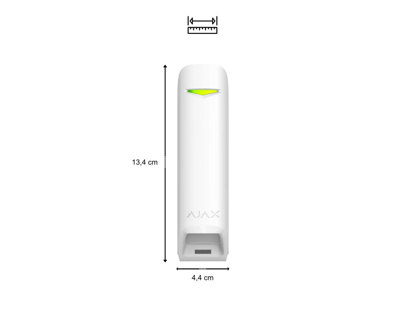 Ajax MotionProtect Curtain je vnitřní bezdrátový detektor pohybu se záclonovou detekční charakteristikou. Zařízení je ideální k zastřežení zasklených dveří, průchodů nebo garážových vrat.