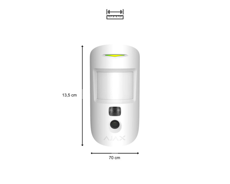 Ajax MotionCam je vnitřní bezdrátový detektor pohybu s foto verifikací poplachu. Zařízení detekuje pohyb až na vzdálenost 12 metrů, samozřejmostí je PET imunita (odfiltrování pohybu domácích zvířat). MotionCam komunikuje s ústřednou prostřednictvím dvou zabezpečených radiových protokolů. Pro přenos zpráv o poplachu a dalších událostech je využíván protokol Jeweller, pro přenos fotografií protokol Wings. Dosah komunikace je až 1 700 metrů v otevřeném prostředí.