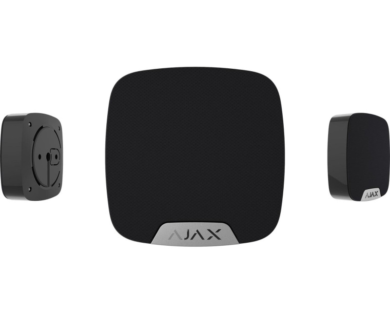 Ajax HomeSiren je bezdrátová siréna určená pro vnitřní použití. Výkon akustické signalizace lze libovolně upravit v rozmezí od 81 do 105 dB. K zařízení můžete připojit externí LED diodu k signalizaci poplachu.