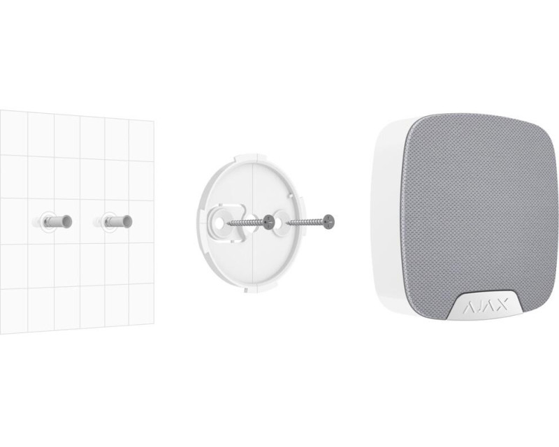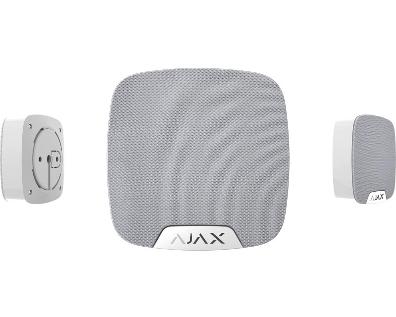 Ajax HomeSiren je bezdrátová siréna určená pro vnitřní použití. Výkon akustické signalizace lze libovolně upravit v rozmezí od 81 do 105 dB. K zařízení můžete připojit externí LED diodu k signalizaci poplachu.