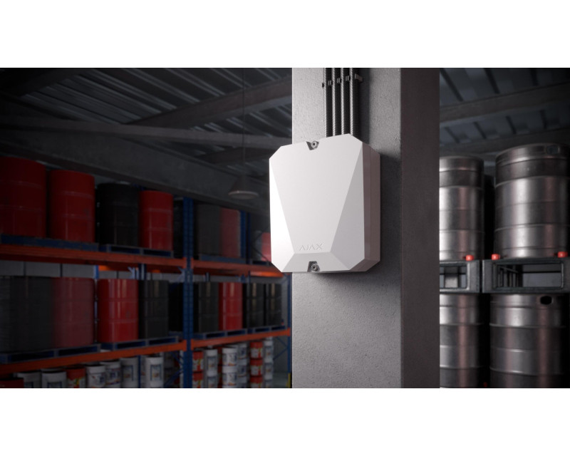 Drátový modul pro integraci drátových zařízení do systému Ajax, 18 vstupů, podpora 15 poplachových událostí, dosah mezi zařízením a detektory 400 metrů.