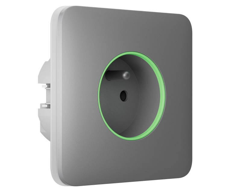 Chytrá zásuvka - čelní panel (outlet) umožňuje vzdáleně ovládat (spínat) připojené elektrické spotřebiče. Barevný LED indikátor signalizuje zatížení, zároveň je možné skrz aplikaci měřit spotřebu elektrické energie. Zařízení lze aktivovat manuálně v aplikaci, tlačítkem nebo automaticky při změně stavu zabezpečovacího systému – poplach, přednastavený harmonogram.
