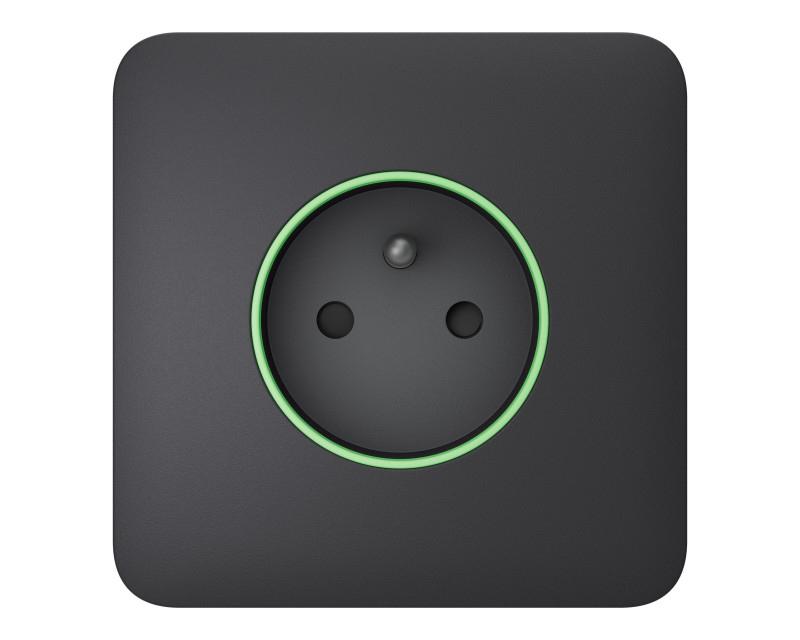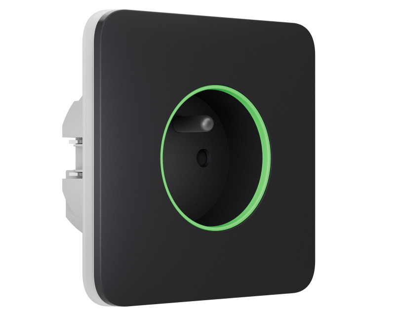 Chytrá zásuvka - čelní panel (outlet) umožňuje vzdáleně ovládat (spínat) připojené elektrické spotřebiče. Barevný LED indikátor signalizuje zatížení, zároveň je možné skrz aplikaci měřit spotřebu elektrické energie. Zařízení lze aktivovat manuálně v aplikaci, tlačítkem nebo automaticky při změně stavu zabezpečovacího systému – poplach, přednastavený harmonogram.