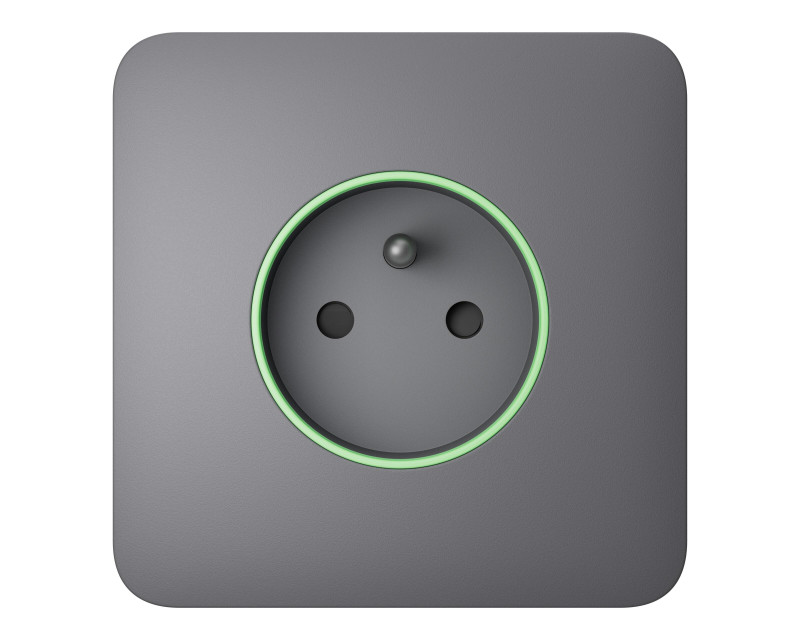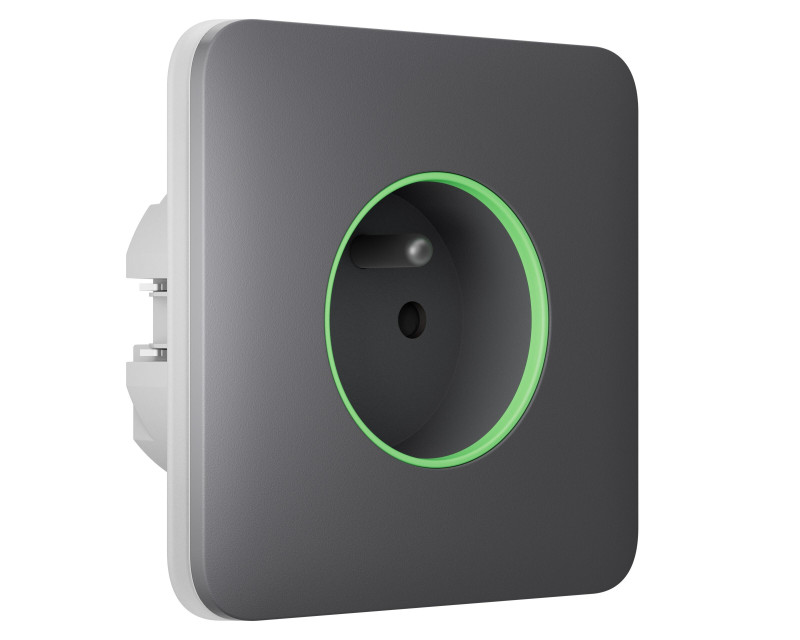 Chytrá zásuvka - čelní panel (outlet) umožňuje vzdáleně ovládat (spínat) připojené elektrické spotřebiče. Barevný LED indikátor signalizuje zatížení, zároveň je možné skrz aplikaci měřit spotřebu elektrické energie. Zařízení lze aktivovat manuálně v aplikaci, tlačítkem nebo automaticky při změně stavu zabezpečovacího systému – poplach, přednastavený harmonogram.