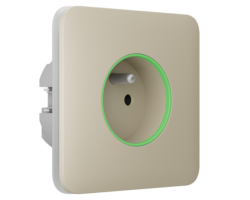 Chytrá zásuvka - čelní panel (outlet) umožňuje vzdáleně ovládat (spínat) připojené elektrické spotřebiče. Barevný LED indikátor signalizuje zatížení, zároveň je možné skrz aplikaci měřit spotřebu elektrické energie. Zařízení lze aktivovat manuálně v aplikaci, tlačítkem nebo automaticky při změně stavu zabezpečovacího systému – poplach, přednastavený harmonogram.