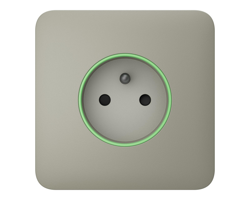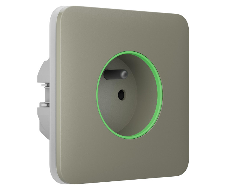 Chytrá zásuvka - čelní panel (outlet) umožňuje vzdáleně ovládat (spínat) připojené elektrické spotřebiče. Barevný LED indikátor signalizuje zatížení, zároveň je možné skrz aplikaci měřit spotřebu elektrické energie. Zařízení lze aktivovat manuálně v aplikaci, tlačítkem nebo automaticky při změně stavu zabezpečovacího systému – poplach, přednastavený harmonogram.
