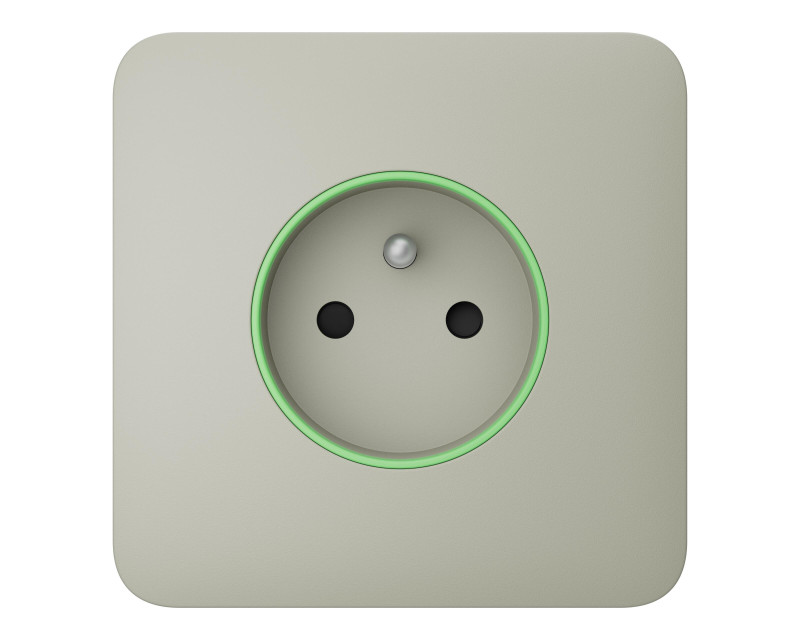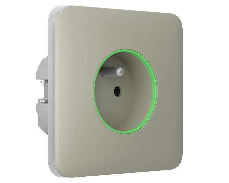 Chytrá zásuvka - čelní panel (outlet) umožňuje vzdáleně ovládat (spínat) připojené elektrické spotřebiče. Barevný LED indikátor signalizuje zatížení, zároveň je možné skrz aplikaci měřit spotřebu elektrické energie. Zařízení lze aktivovat manuálně v aplikaci, tlačítkem nebo automaticky při změně stavu zabezpečovacího systému – poplach, přednastavený harmonogram.