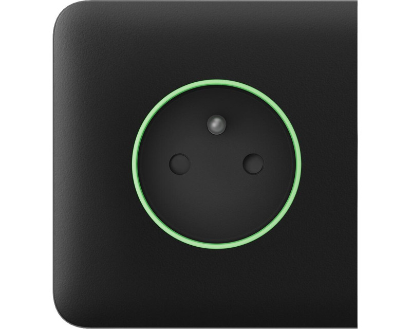 Chytrá zásuvka - čelní panel (outlet) umožňuje vzdáleně ovládat (spínat) připojené elektrické spotřebiče. Barevný LED indikátor signalizuje zatížení, zároveň je možné skrz aplikaci měřit spotřebu elektrické energie. Zařízení lze aktivovat manuálně v aplikaci, tlačítkem nebo automaticky při změně stavu zabezpečovacího systému – poplach, přednastavený harmonogram.