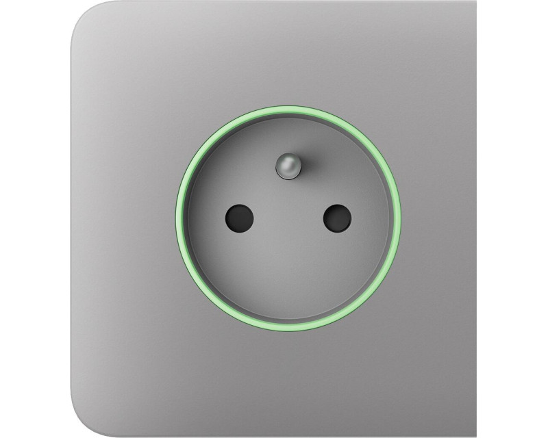 Chytrá zásuvka - čelní panel (outlet) umožňuje vzdáleně ovládat (spínat) připojené elektrické spotřebiče. Barevný LED indikátor signalizuje zatížení, zároveň je možné skrz aplikaci měřit spotřebu elektrické energie. Zařízení lze aktivovat manuálně v aplikaci, tlačítkem nebo automaticky při změně stavu zabezpečovacího systému – poplach, přednastavený harmonogram.