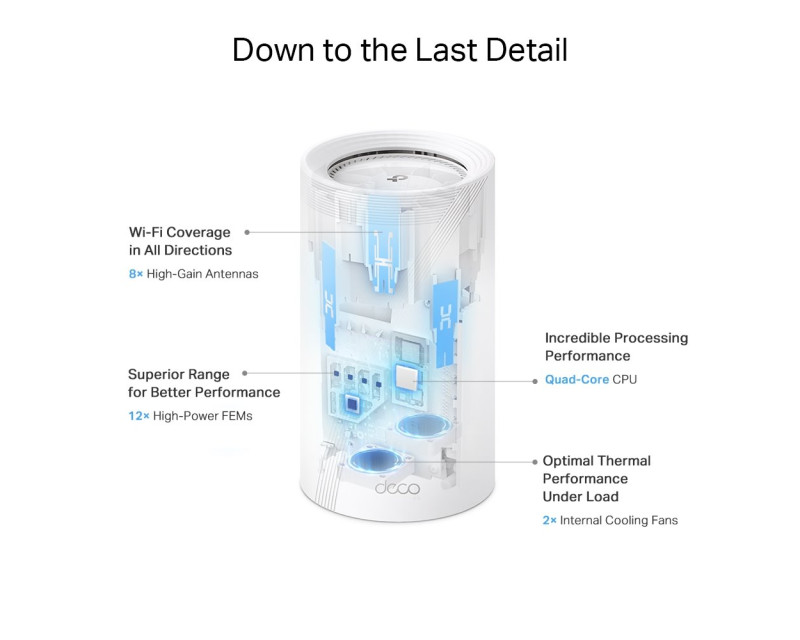 S Wi-Fi routerem TP-Link Deco BE85 od TP-Link si zajistíte kvalitní připojení. Nenechte se ničím rušit u sledování oblíbených pořadů na internetu nebo třeba během videokonference. Router se skvěle hodí do domů s mnoha místnostmi.