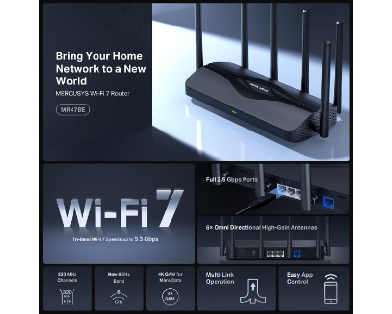 WiFi router TP-Link MERCUSYS MR47BE BE9300 WiFi 7, 3x 2.5GLAN, 1x 2.5GWAN, 2,4/5/6GHz