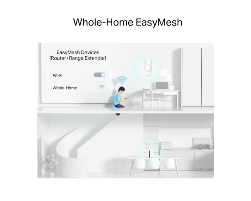 Modem TP-Link spolupracuje s technologií EasyMesh. Snadno tedy vytvoříte jednotnou síť složenou z více routerů a dalších jednotek. Spolupracují spolu a spolehlivě pokryjí celou vaši domácnost či podnik. Vytvořte si flexibilní a snadno nastavitelnou síť.