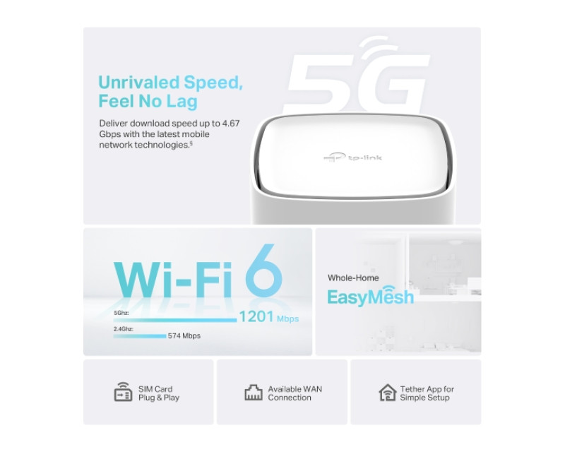 Modem TP-Link Archer NX200 vám poskytne rychlé připojení k síti 5G. Získáte přístup k internetu, ať jste kdekoliv – doma, na chatě, na dovolené nebo provozujete dočasnou prodejnu (například stánek s občerstvením).