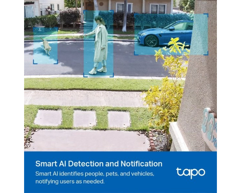 Kamera TP-Link Tapo C420 je vybavená inteligentní detekcí pohybu AI. Tato funkce dokáže rozpoznat osoby, domácí mazlíčky nebo vozidla a odeslat uživateli příslušné oznámení. Tím předchází falešným poplachům. Velice praktická je také možnost výběru oblasti detekce, díky čemuž můžete kameře plně přizpůsobit zónu aktivity.